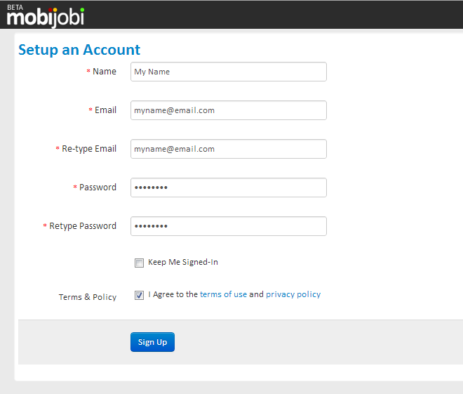 In case all fields are filled correctly you will be directed to the mobijobi main application page.