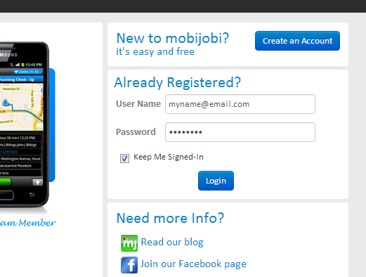 Enter the mobijobi homepage at http://www.mobijobi.com